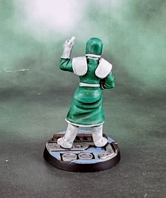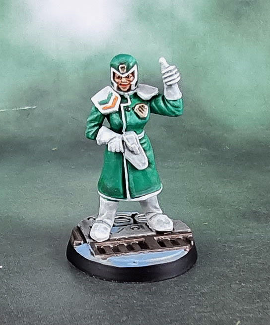 The female SJS Judge is quite a bit smaller than all of the other models, so she ended up with a 25mm base rather than a 32mm base. With Anderson, DeMarco and Slocum I went with larger bases to “protect” the metal models from potential gameplay bumps and paint chips due to their overhanging arms. The other SJS Judge could have gone either way with his base, so I just went with the majority size from this batch.