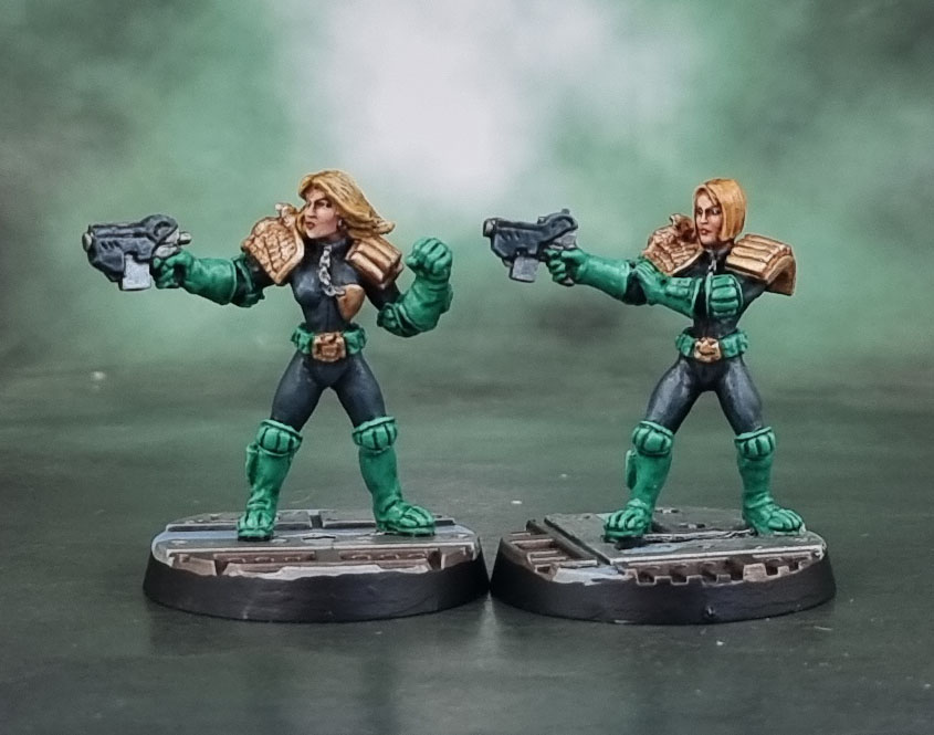 I suspect that I may have even started work on these for a previous Apoocalypse Me, or potentially as a direct followup from those last few JD figures I painted, as finishing something often has the effect on me of a burst of enthusiasm to start more of the same – though typically not quite enough enthusiasm to get the new batch of models finished! First up we have Psi-Judge Anderson and Judge DeMarco. Both of these models are from the range that Mongoose put out awhile back.