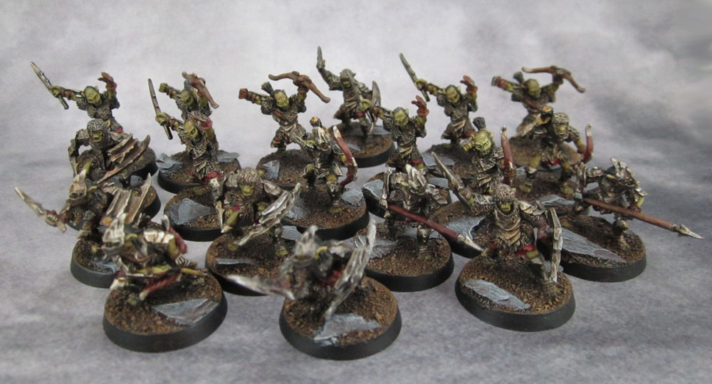 I still need to buy Drûzhag, The Beastcaller and possibly the Moria Goblin Commanders set for the alternate Shaman model and the Drummers. Aside from those, the Blackshields and the more exciting and exotic models like Trolls, Wargs and the like, it’ll just be the 11 sprues of plastic Moria Goblins and I’m done. 132 models. Bleugh. I see some dead-eyed batch painting in my future.