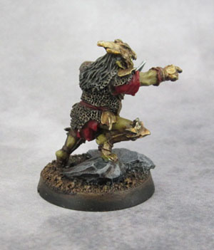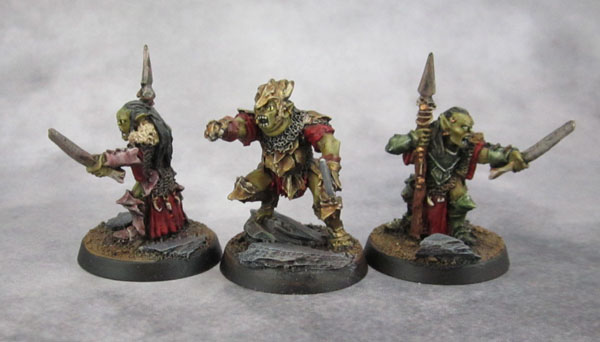 These three are the top end of the Moria Goblin Army I’ve painted up for LotR SBG and KoW recently (and WotR if I ever actually play it). Durbûrz, the Goblin King of Moria will lead the forces until Golfimbal on Foot and Mounted are finished, and no doubt sometimes even then.