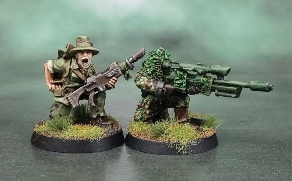 And that’s that for this pair. As a collection of models, Fingers has some rockets in his backpack so he would have originally functioned as a loader model for Rocket Girl, though when these models were released that woul dhave had no actual in-game effects as Heavy Weapon teams were composed of two distinct models, one of which was the gunner with the big gun and the other funcitonally just being a rifleman in the squad. Not sure how that works these days with the multibased weapon teams. I haven’t played 40k for quite some time and Imperial Guard for even longer.
