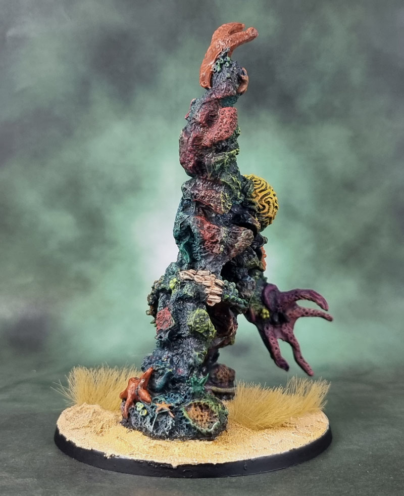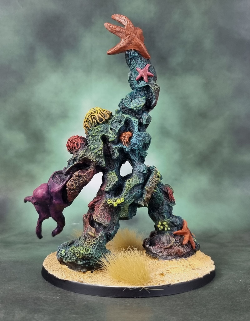 Today’s post is another Queue-Jumper. That is to say, I’ve still got a fair few April models to post up, but I entirely painted this one today (Sunday at time of typing) and so up it goes. It’s a “Coral Golem”, a Bones model, and also another good example of Reaper being Reaper with all the weird shit that they produce. It also happens to be my first submission for Monster MAYhem, over at the Angry Piper’s Blog – aka Dead Dick’s Tavern and Temporary Lodging, run by a nice bloke named Keith.