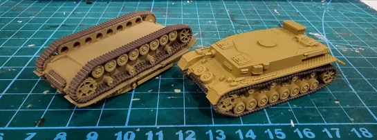 You should again spray the turret and hull as seperate pieces, though we’re not doing the undersides of the model this time. We’re leaving that US Khaki there.