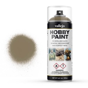 STEP 2: Spray Basecoat Desert Yellow (Vallejo). I do this as a Zenithal coat from the top and top angles of the model. It’s also worth noting that Vallejo’s Spray Can Desert Yellow is actually the equivalent to Vallejo Model Colour Green Ochre 74.914 and NOT Vallejo Model Colour Desert Yellow 70.977. This is because…. reasons.