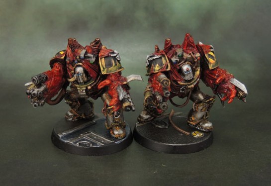 Staying with the same colour scheme I’ve used on their predecessors and in keeping with the rest of the army – Red and Black, Iron and Brass, Rust and Verdigris, Cadmium-Red wood – and Bone. The tabards and cloth this time have been given a Par Chevron in red and black.