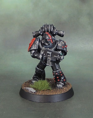 Something both familiar yet new today – it’s another Fallen Dark Angel, though this time it’s the first (almost) entire model I’ve made from my Betrayal at Calth stash. At this point I think I’ll put together two squads of Fallen – one made of old-school Rogue Trader-era metal models, and one made of more modern plastics and resins – clearly, this guy is the test model for the latter group.