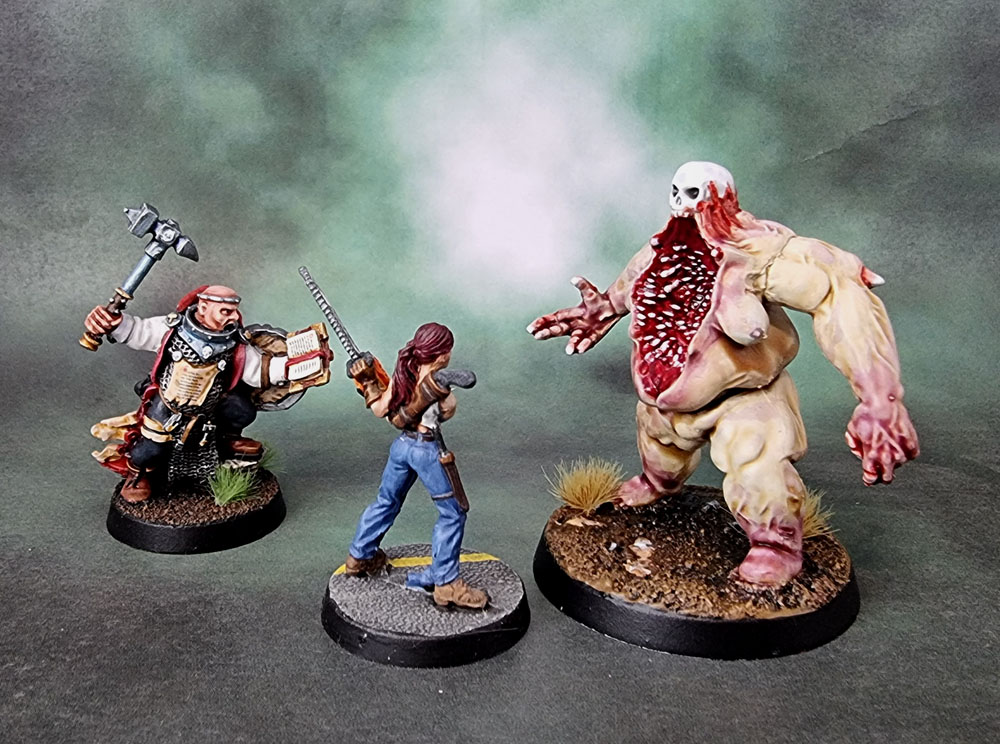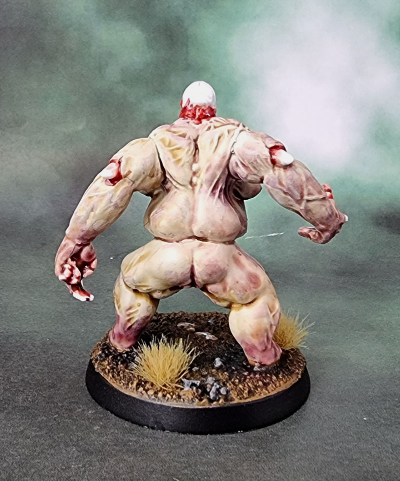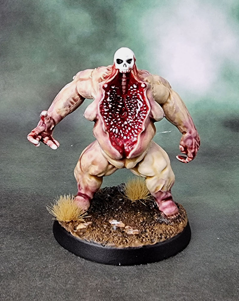 Anyway, the model. It’s a good size and a versatile enough sculpt to be used for a lot of things in my opinion. Undead Ogre. Chaos Spawn of (probably) Nurgle (I mean, that is –or was- a human who has been seriously punished by something!) It could be used as an Abomination in Zombicide, an Science Experiment Gone Awry, an Alien Virus… quite a lot of options for this one. So Fantasy, Sci-Fi, Modern, Pulp. A very versatile model for such a disgusting mess. I also like the fact that it can easily read as either male or female, and between the shape of the breasts and the very slight and subtle vagina dentata it’s got going on, that’s my own personal read of the model. (And yeah, If it was completed earlier I’d have submitted it for Fembruary, as well. After all, females can be monsters, too!)