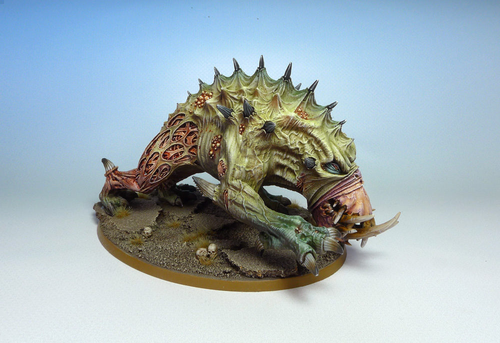 As well painted as the official Spined Chaos Beast is in the above photograph, it’s a pretty awful model, so I have no particular desire to purchase one or track one down. So Goremaw will fit that nicely enough. So we’ve got the use and stats sorted, but how to paint? I’ve already done Purple Worms. I’m very happy with them but don’t wish to revisit that scheme with Goremaw.