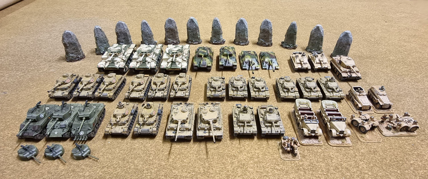 Another rather belated post here, but here’s my round-up from the 2021 edition of Dave Stone’s Season of Scenery Challenge. As you can see, I leant rather heavily into the “vehicles also count” aspect of the challenge. I actually intended to get a ton of regular scenery done, but I started by using the challenge as motivation to finish the three Bolt Action/28mm/1:56 Valentine tanks that had sat, base coated for a few years, and then decided to paint the trio of Shermans for TANKS!, and then the Panther/Jagdpanther kits for TANKS! and then followed up by using it as motivation to finish the armour of my long-forgotten Flames of War DAK force, and then started to finish the infantry, and then decided to bring the force up to modern scratch, and so down that rabbit hole I fell.