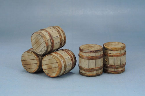 So that’s what we have here. Barrels. I haven’t started on the other stuff yet, but the barrels are pretty nice for what they are. I usually paint my barrels up in the standard, admittedly boring way that most of us do. Dark brown wood, metal hoops. Job done. Nothing wrong with that, but with posts by Dagger and Brush on building trees with realistic bark colours resonating in the back of my head, I decided to paint these ones so that they looked a little more …realistic? worn? aged? So they would look like they’ve been left outside in the elements for their time. Faded, stained wood and rusted metal.