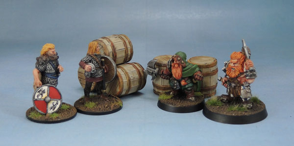 Norsemen and their Norse Dwarf cousins discuss the best way to provide scale shots for barrels.