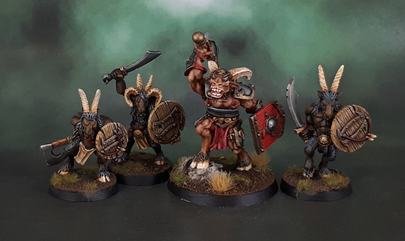 Most of the rest of the Gors were painted in the usual manner that I paint this sort of model – small batches of 3-6 and not taking note of the exact colours used for the flesh tones or fur on each while still remaining close enough. This (in my mind, anyway) gives a realistic homogenous look to them while still giving a bit of tonal variation between individuals. They may all be from the same tribe, but they’re also not clones!