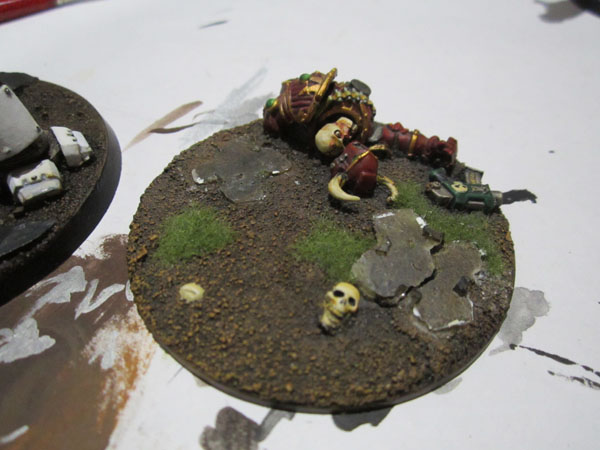 I pried the Loyalist dread off it’s old “diorama” base, as dead chaos marine just isn’t the look I want on my base for it. It’v every possible that this fallen Word Bearer (probably) will also be pried off the base in turn and turned into something else. An objective marker, perhaps?