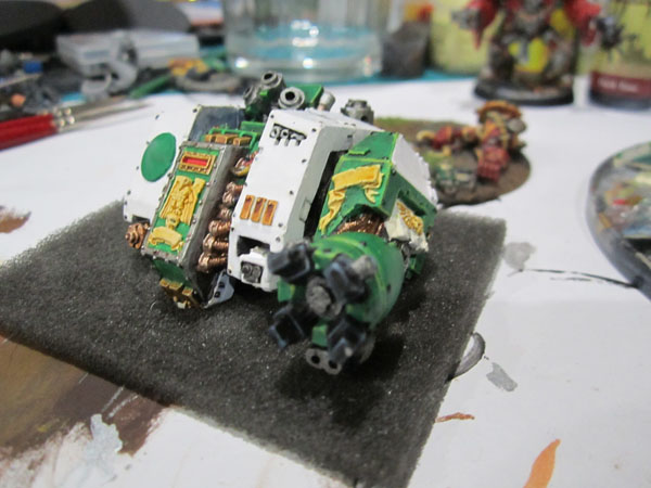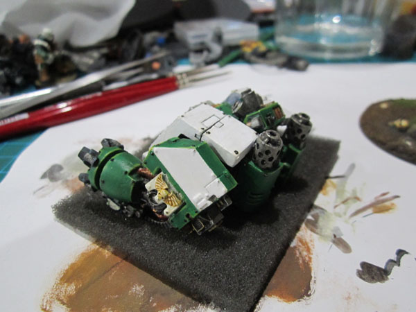 The green-and-white dread was built as part of my fresh-start-for-3rd ed marine army. A lot is done, but it still very much needs highlighting, shading and work on the details and suchlike.