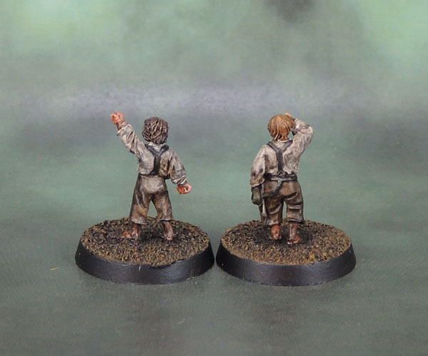 And so then, are these figures as well! In the photos they look a bit roughly washed, especially in some of the clothing folds – and they are, with washes, powders turned into muck, and more – though the satin spray I hit them with gives them a sweaty sheen – again, to represent their look when the ring is cast into the fires, and it does a lot to reduce the roughly-washed look. Also, the figures are bloody tiny!