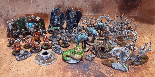 Hm.. looking through, though – everything here was actually neglected except for three models. The trees had nothing done to them besides cleanup and spraying, but that had all happened more than a year ago. The rubble piles were also primed months ago. The dragon statues hadn’t had anything done to them previously, but they kinda fit due to where and how they were stored. But given that I’ve always considered “assembled, primed and then abandoned” as “started” for the purposes of Neglected model challenges… the only ones with less than that on the clock would be those terrible Dark Stone Brutes, who ad been clipped from the sprue and then forgotten about until I decided to use Contrast experiments to also knock them out quickly.