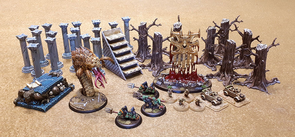 Hm.. looking through, though – everything here was actually neglected except for three models. The trees had nothing done to them besides cleanup and spraying, but that had all happened more than a year ago. The rubble piles were also primed months ago. The dragon statues hadn’t had anything done to them previously, but they kinda fit due to where and how they were stored. But given that I’ve always considered “assembled, primed and then abandoned” as “started” for the purposes of Neglected model challenges… the only ones with less than that on the clock would be those terrible Dark Stone Brutes, who ad been clipped from the sprue and then forgotten about until I decided to use Contrast experiments to also knock them out quickly.