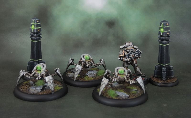 As with the Pylons, they could be Necontyr something something, or simply large spidery AdMech Non-Combat Servitors, as they lack any obvious weapons. Maybe Servitors for my Iron Warriors? I could even use them for Shadows of Brimstone, in a pinch(!) I realised that I didn’t provide any scale reference for the pylons the other day, so this Iron Warriors Marine does the trick for both sets.