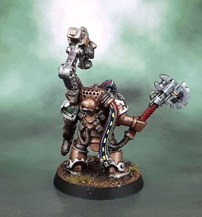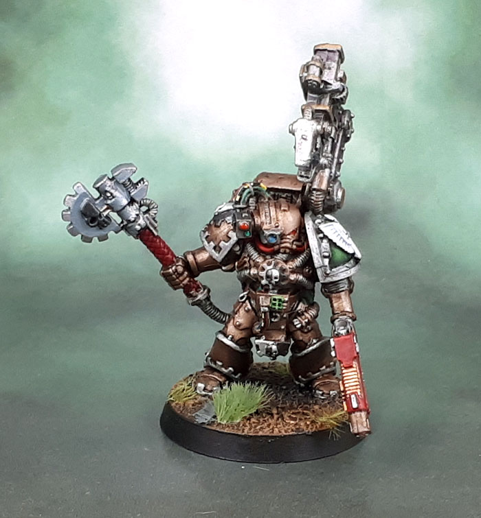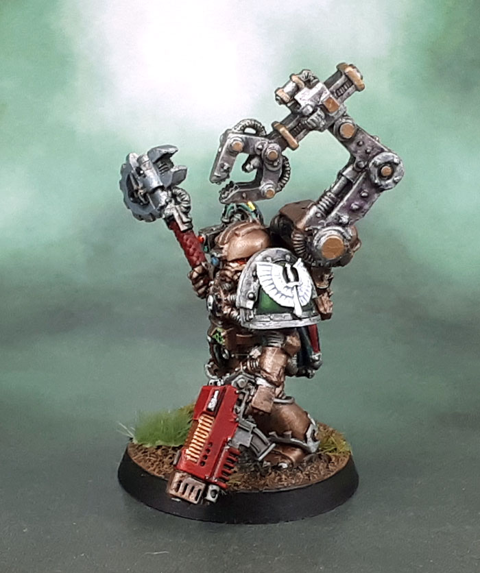 I finished another Space Marine as part of my first Tray. This one is another model that I got stuck on for years – a Techmarine of the Dark Angels that I started on ….well, it was a long time ago. Now I’m not entirely one for the colour-coding of Marine Specialist Officers. Well, I’m good with Chaplains having black armour, and Apothecaries being (mostly) white, but after that it gets hazy. I’m ok with some of my Techmarines being Red, because Adeptus Mechanicus, but sometimes a metallic on the red spectrum just feels better to me. In this case a deep slightly-coppery brown for the Dark Angels just feels good against the green armour of the Chapter. (And just forget about blue armour for Librarians!)