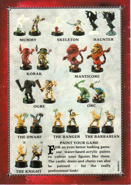 Look at the miniatures! There’s a definite Games Workshop stylistic thing happening there, which was very exciting back in ’92. The Mummies and, well, one of the Skeletons I still have, painted and set up with the undead army. No idea what became of much of the rest of the set, including the large temple that came as scenery in the set, which I started converting way back decades ago but never finished. If I ever do find it, I’ll finish it and show it here. Sadly, I never actually played the game. So, um.. yeah.