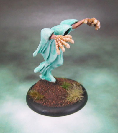 Next up, a model started back in the early 1990’s, “finished” to a standard I was unhappy with for a long time, buried in a figure case, and recently exhumed and finished to what is again, a “good enough” tabletop standard. I’ve gone for what has become the more or less default “ethereal” paint style ever since the LotR Army of the Dead became a thing back in the early 2000’s.