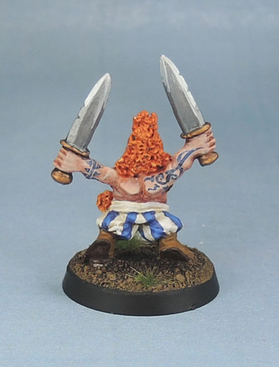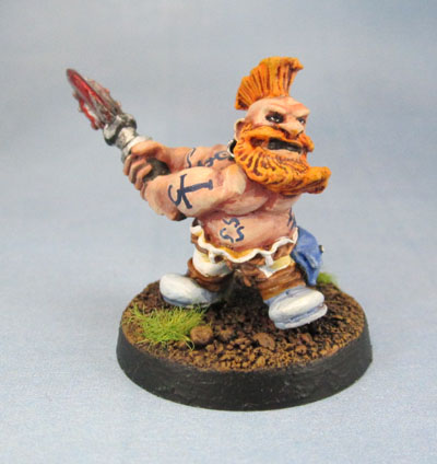 For the wounded slayer, I considered adding fresh blood to his wrappings after varnishing the models. I decided against it, instead going for more of a dried blood stain on them than a monents-fresh set of wounds. Think David Wenham in 300.