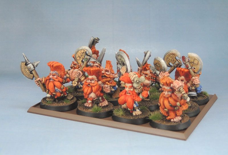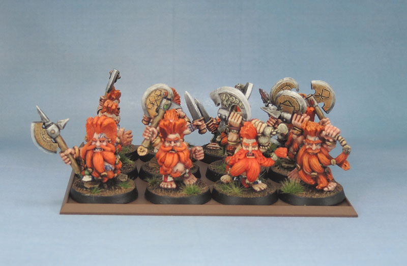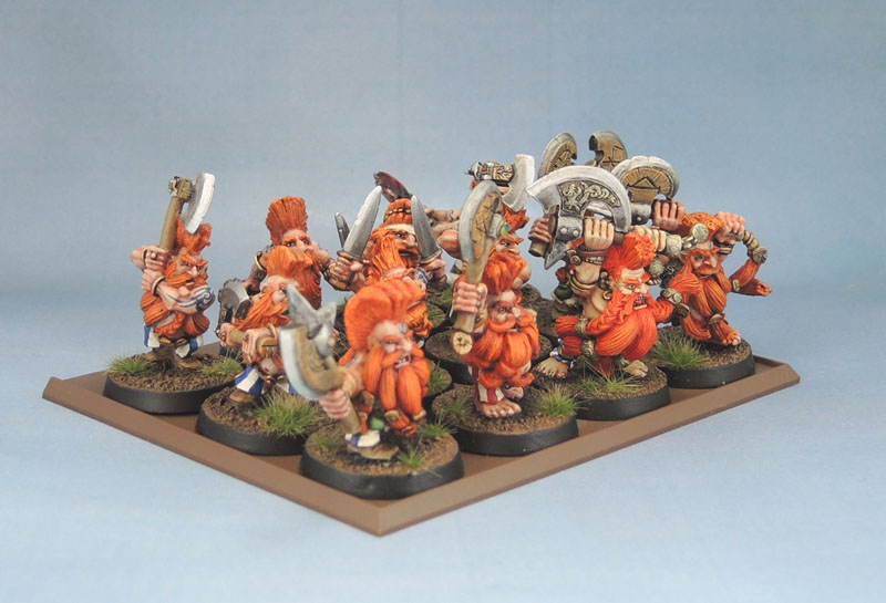 Now that I’ve spent the last 5 minutes slagging them off. The act of painting them has warmed me to these models a bit. I also like the fact that they’re not all armed with the typical axes. After all, Dishonoured Dwarves would have come from a variety of walks of Dwarven life, and so I see the other weapons mixed in – particularly the swords – as a reflection of that. Particularly for the (let’s face it) less impressive models like the Marauder models that can be viewed as representing Dwarves who have more recently taken the Slayer’s Oath.