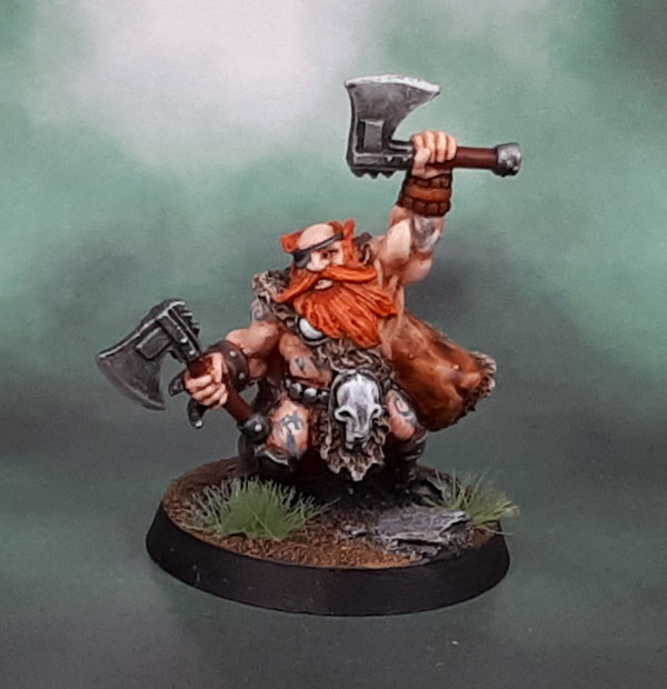 That fucker, in this case, is the Mantic Dwarf Berserker (not a Slayer, oh no!) Lord. One of Mantic’s older metal models, but very much one of their better ones from the early era. I painted him as a Slayer, because those are the models he’ll be going alongside in my collection, and without too much extra-fanciful decoration, because amongst the Slayer models I’ve accumulated over the years, this guy makes for a nice solid grunt rather than a Lord.