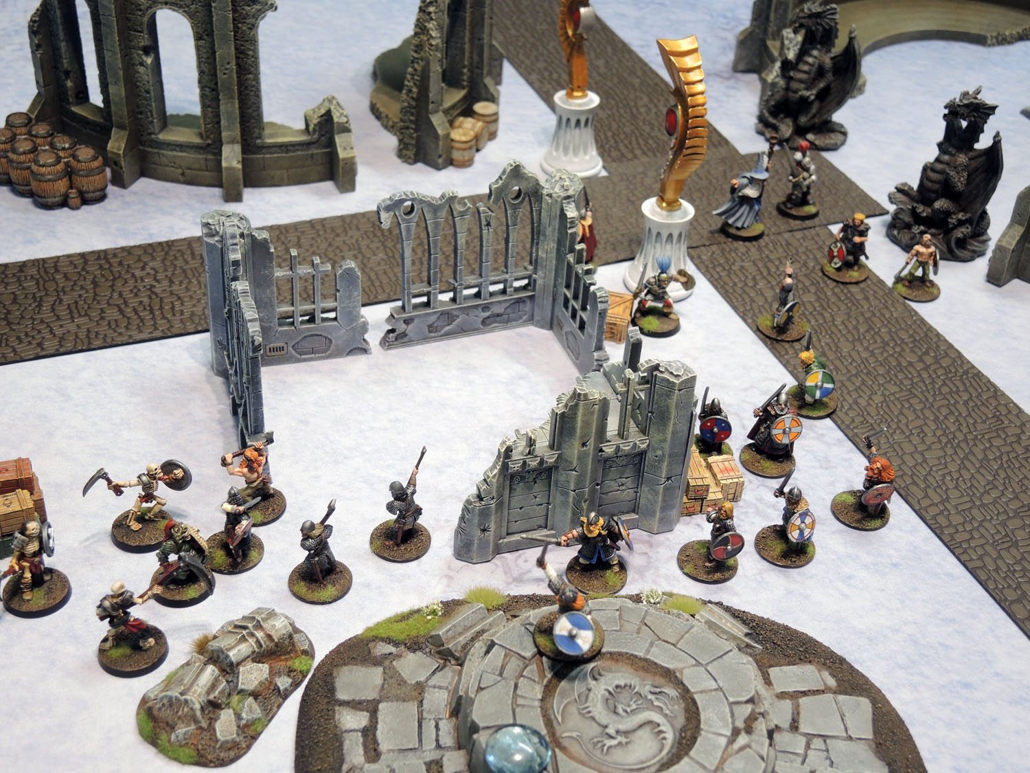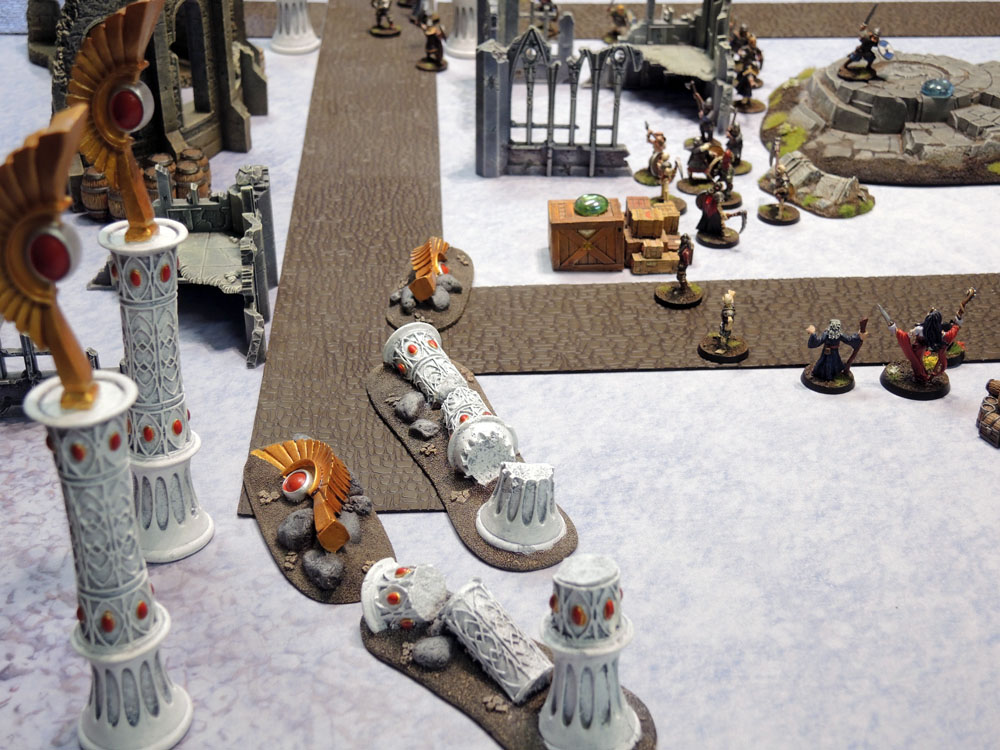 Next up was to lay some more dense scenery onto the mat and see how it looked. First up we went for a kind of Fantasy layout, a pretend-game of Sorta-Frostgrave, to see how it all looks. More specifically to see how my existing terrain worked with the Snow Territory Mat.