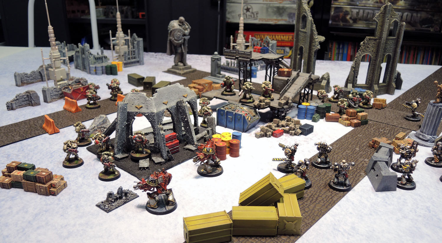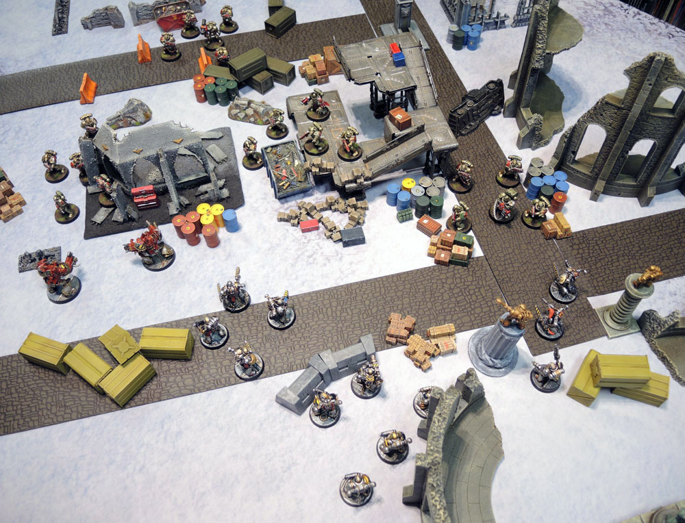 And… it actually looked decent. To me at least. The dark, scorched brown looking bases on both the models and some of the terrain obviously contrast quite starkly with the Snow Territory mat, but it kinda works for me. Obviously snow on bases would make everything tie in much more effectively, but it’s far from awful.