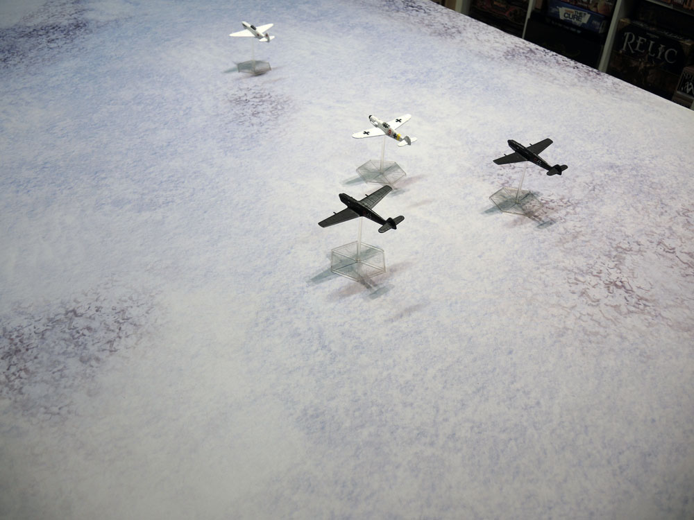 Once again, I feel that it looks fine – Great even for air combat battles. I got out some Soviet and Luftwaffe planes for these pics, but it would work just as well for Western Europe 1945 or any other era’s dogfights above the snow. I had a feeling that it’d look good after seeing the X-Wing ships on it, but I wanted to put the WW2 fighters on it and see for myself.