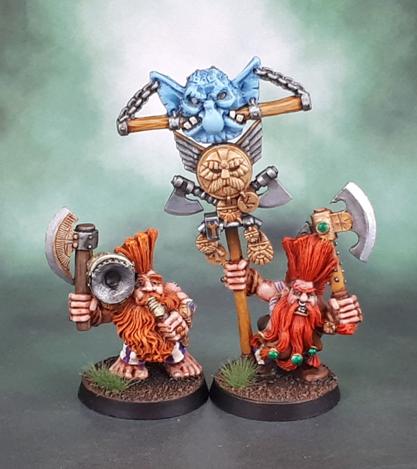 Today’s post features the first Dwarves I’ve completed in quite some time. It is in fact a pair of models I’ve painted/completed before, pretty much two full years ago. There’s not all that much to write about them, really. There were a bunch of Dwarven Slayers sitting on that one spot on my painting desk, that I’d occasionally look at and think about working on, but it took a concerted mental effort to pick them up properly and just get them done.