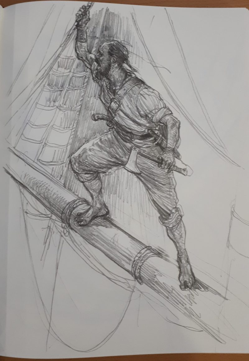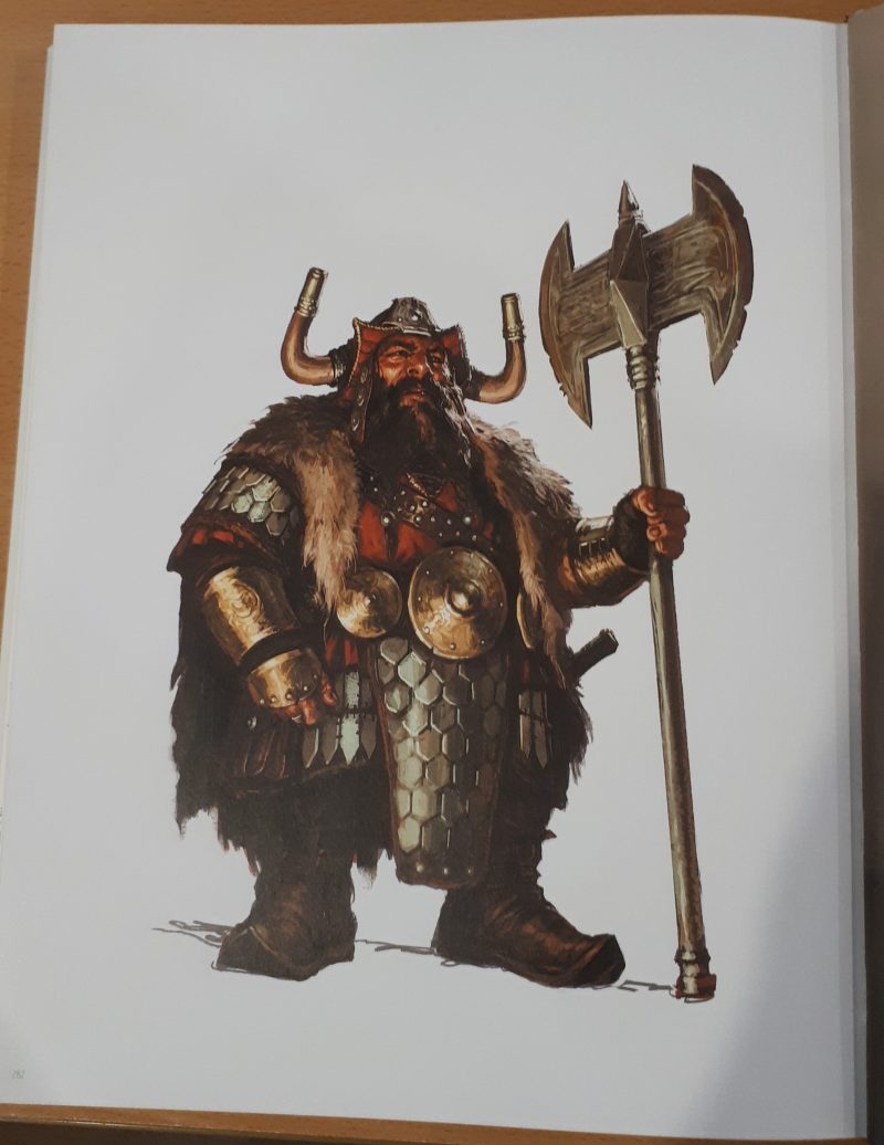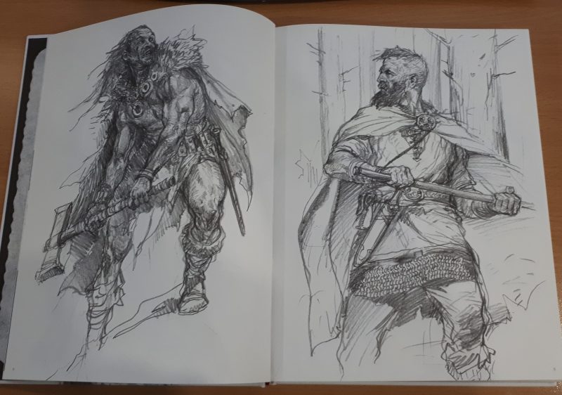 There are a few general themes of the art found within this book. The book begins with a number of fairly generic “medieval fantasy” sketches, which to me, give a “Dungeons and Dragons/Magic: The Gathering” feel (as opposed to a “Warhammer” feel) – these transition to sketches that more strongly feature what I’d call “fantasy vikings” and “fantasy barbarians”