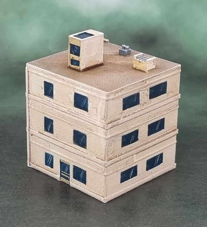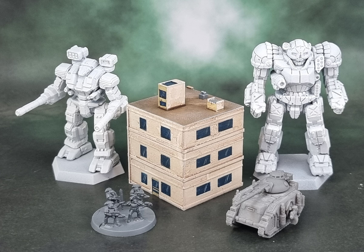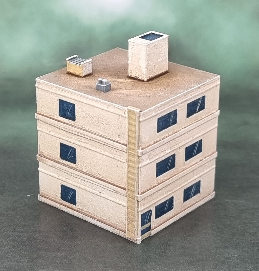 This one is called “100apartmentssmall3level.stl” – though again this is the re-shrunk down version to go with the Battletech/Epic scale buildings. These are tiny when compared to both styles of the other buildings I’ve shown from March’s models – and again I’ll throw in some scale shots when I can!