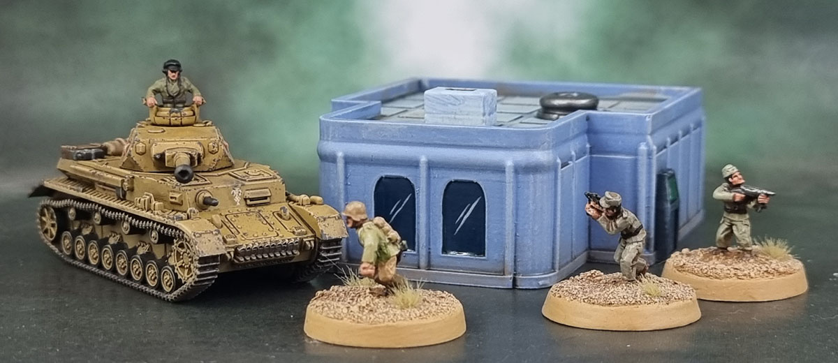 Again with the 3D printed buildings! Into April my finger was still messed up so the best I could manage in terms of painting was relatively simple 3d printed terrain pieces. These ones come from a creator called “MillerBro” and are his collection of 1/100 scale (15mm) low detail Buildings.