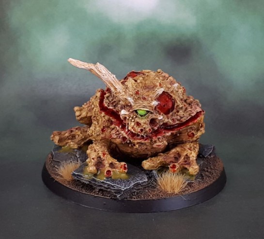 I finally finished it! I’ve had this model since it was released, back in 1990-1. It’s been glued together almost as long. One of the feet fell off, and was lost to time, so I had to recast it using Oyomaru (aka Blue Stuff) and Kneadatite (Greenstuff). Luckily, because Nurgle, it being slightly imperfect was fine. Despite the base feeling a little big (especially compared to the 40mm square it came with), I’ve gone for a 60mm round here rather than an oval for consistency with the new models that I’ll be adding later and mixing in.