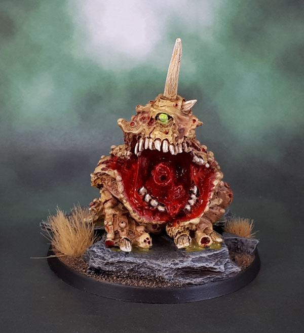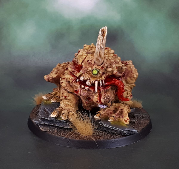 I finally finished it! I’ve had this model since it was released, back in 1990-1. It’s been glued together almost as long. One of the feet fell off, and was lost to time, so I had to recast it using Oyomaru (aka Blue Stuff) and Kneadatite (Greenstuff). Luckily, because Nurgle, it being slightly imperfect was fine. Despite the base feeling a little big (especially compared to the 40mm square it came with), I’ve gone for a 60mm round here rather than an oval for consistency with the new models that I’ll be adding later and mixing in.