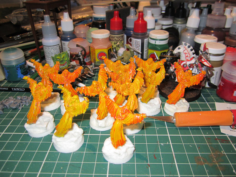 - using the gemstone paints or any other of the newish lines of technical or clear or transparent paints from Citadel, Vallejo, Army Painter, etc – from clear red to rust.