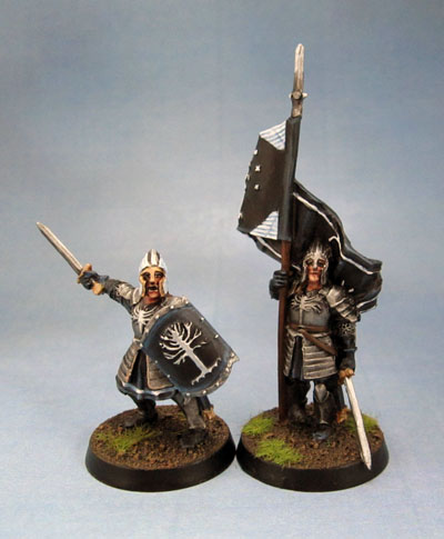 I needed to paint something different to plastic WoMT this month, so I looked through the Gondor figure box, and pulled out something both similar but different to the usual grind. My small collection of Osgiliath Veterans. Originally, when they were released, I didn’t much like the models and got just a few to use as alternative sword captains, but more recently, I managed to pick up a few more so that I could make a small but functional unit.