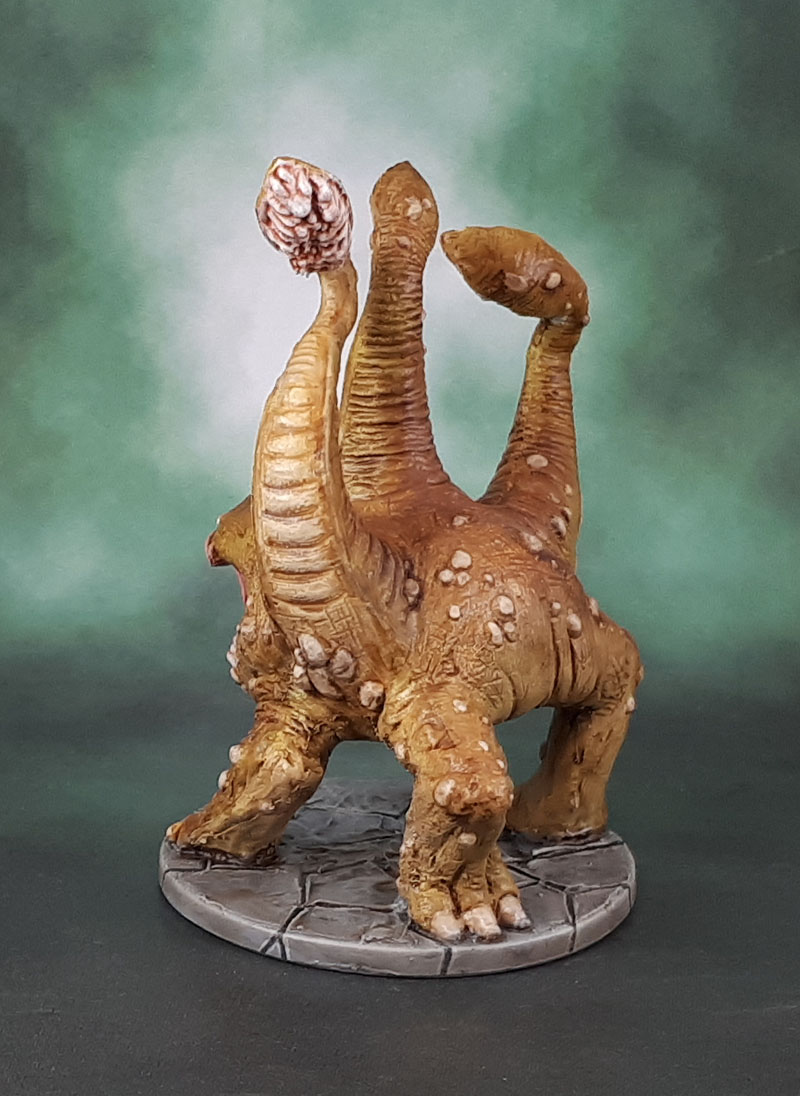 Almost everything I wrote about Bellax the Gauth yesterday applies to today’s model – the Otyugh. It’s from Wrath of Ashardalon – which we’ve been playing – so it queue-jumped The Tray because “need it for the game”. It was sitting int he box, though this time it wasn’t even primed, let along base coated. It looked like a simple, quick, “easy win” as far as painting goes. It got painted from start to finish (including spraying time, drying time, and base-putty time over two days. It also has a name that sounds like a good reason to get tested for COVID if you were say it out loud three times. And finally, it’s a bloody stupid and impractical/unrealistic looking monster. Because D&D, I guess.