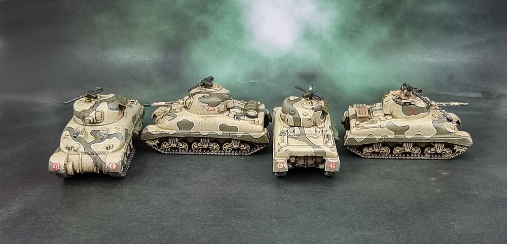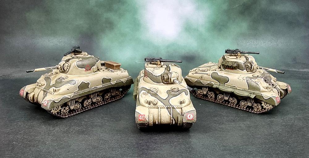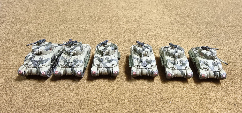 The addition of these three gives me a command platoon of three, as well as two Sherman platoons, also of three each – and as such – a rather basic, self-contained Sherman company without needing to dip into Lee/grants to make up the numbers or anything like that. Of course, I could still add seven more Shermans to give myself the option of a max-strength Sherman Company, although that really does seem like a waste, given the large variety and number of other tanks I already have painted for this force – and the literally hundreds (probably) of other 15mm tanks I have yet to paint!
